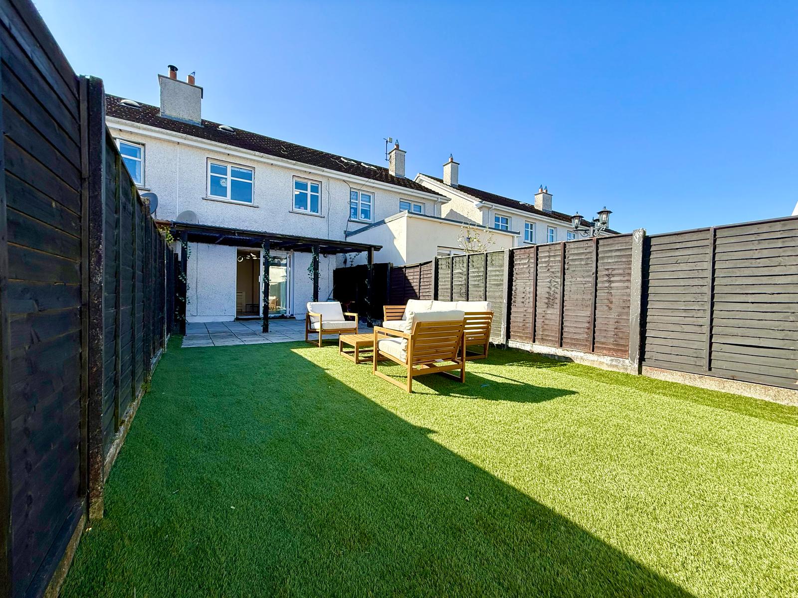 Externally the rear garden has been newly renovated with high quality artificial grass and pergola.