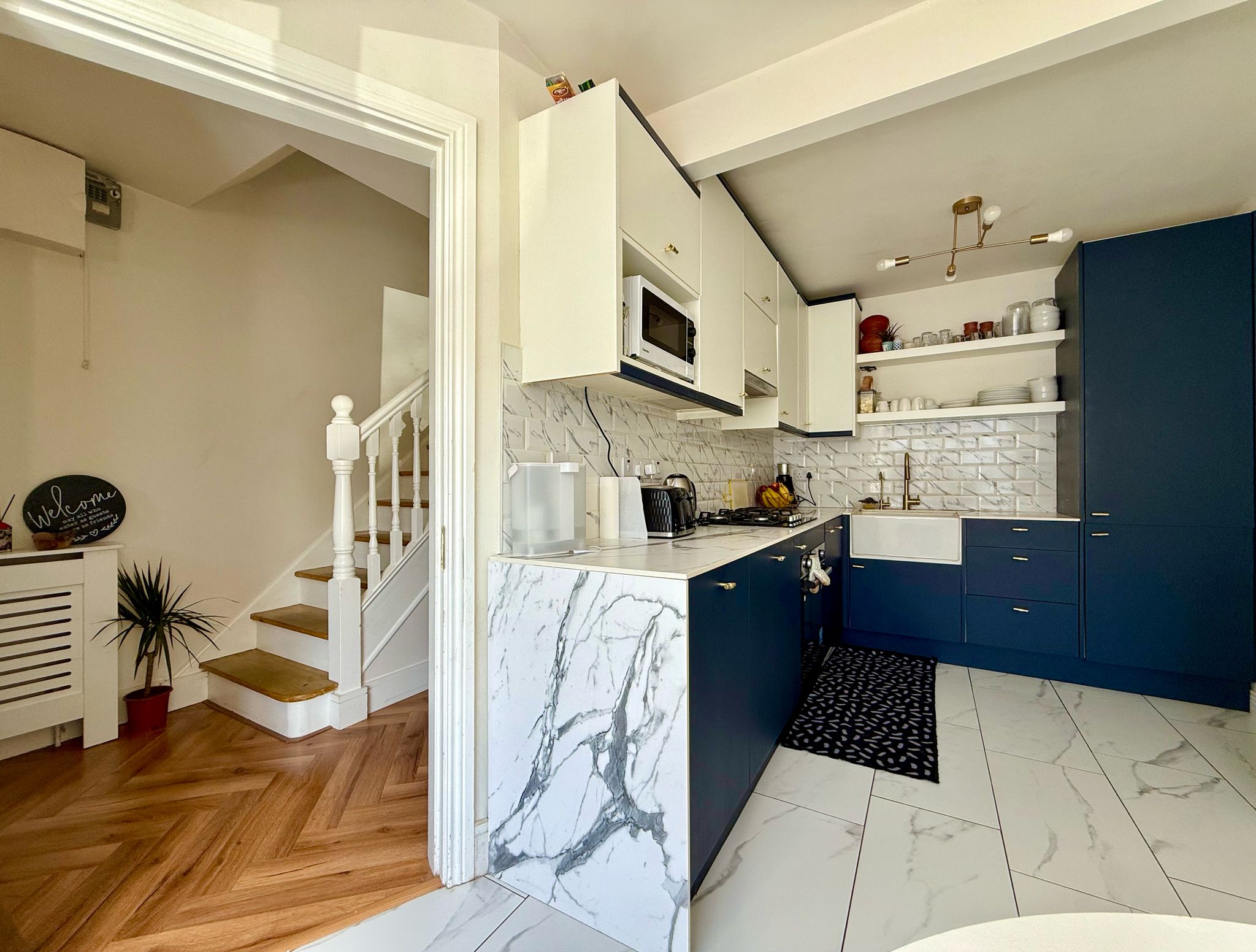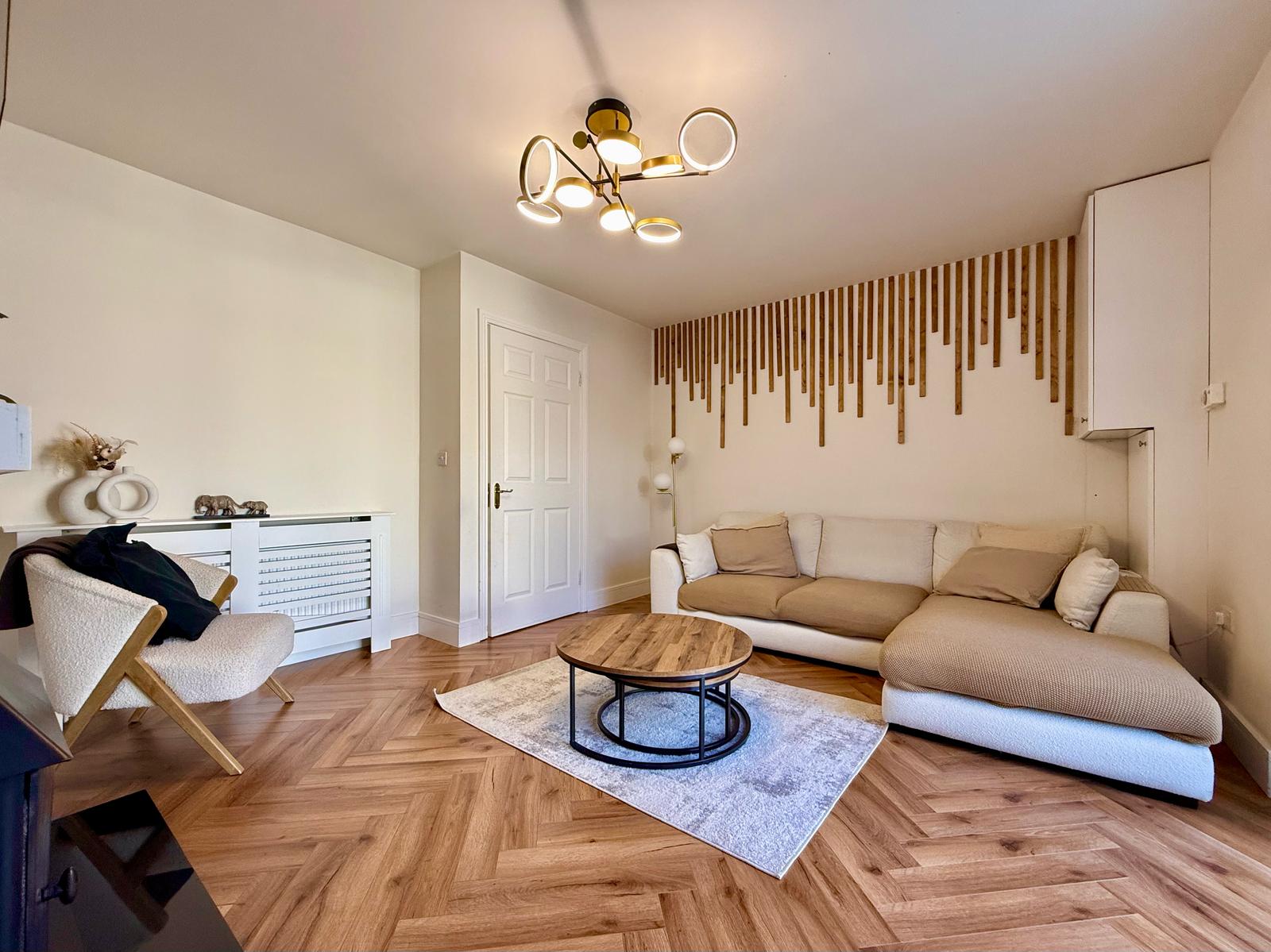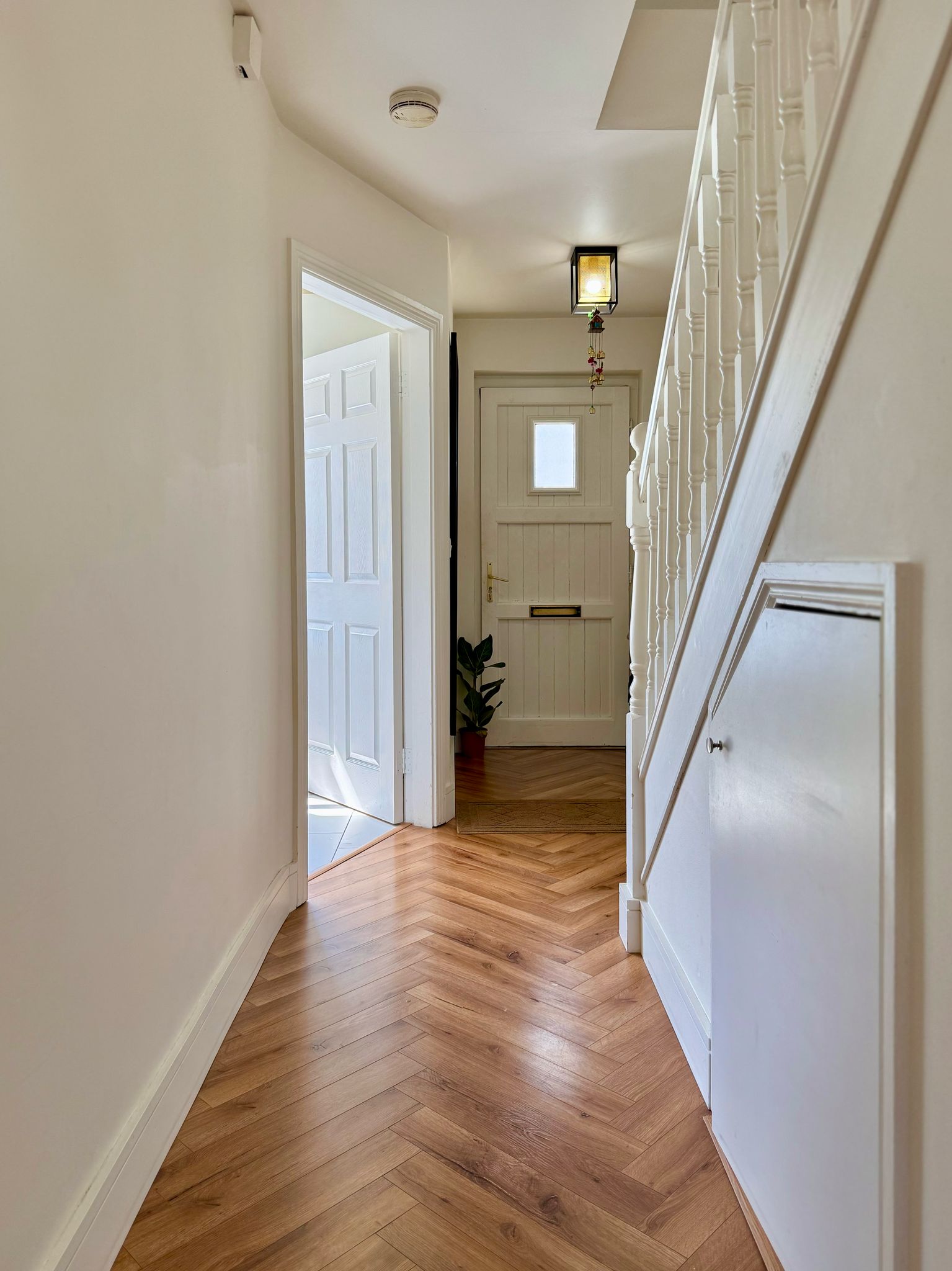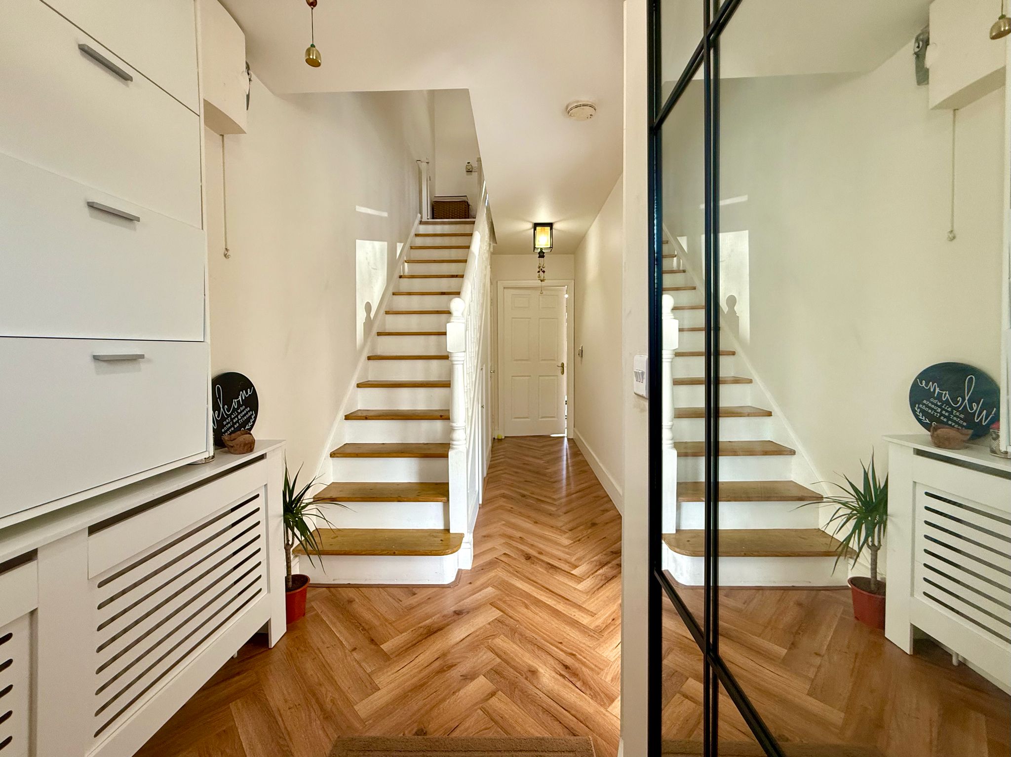The current owners have meticulously updated this home and you can sense this from the moment you walk in through the front door. New herringbone flooring has been laid in the entrance hallway and living room and the house has recently been painted throughout. There is an enhanced under-stair storage unit for improved organization, incorporating a wall-mounted shoe rack.