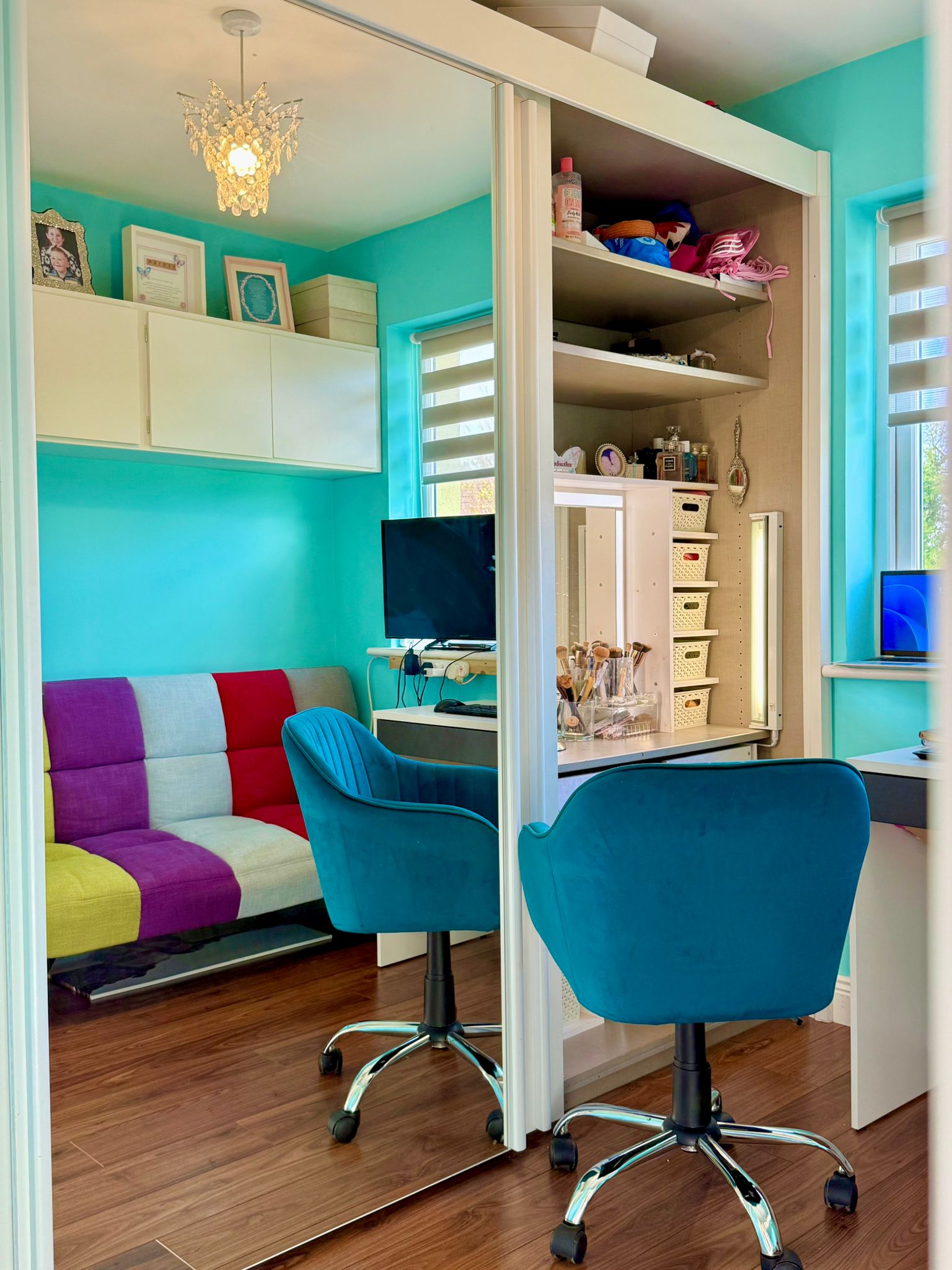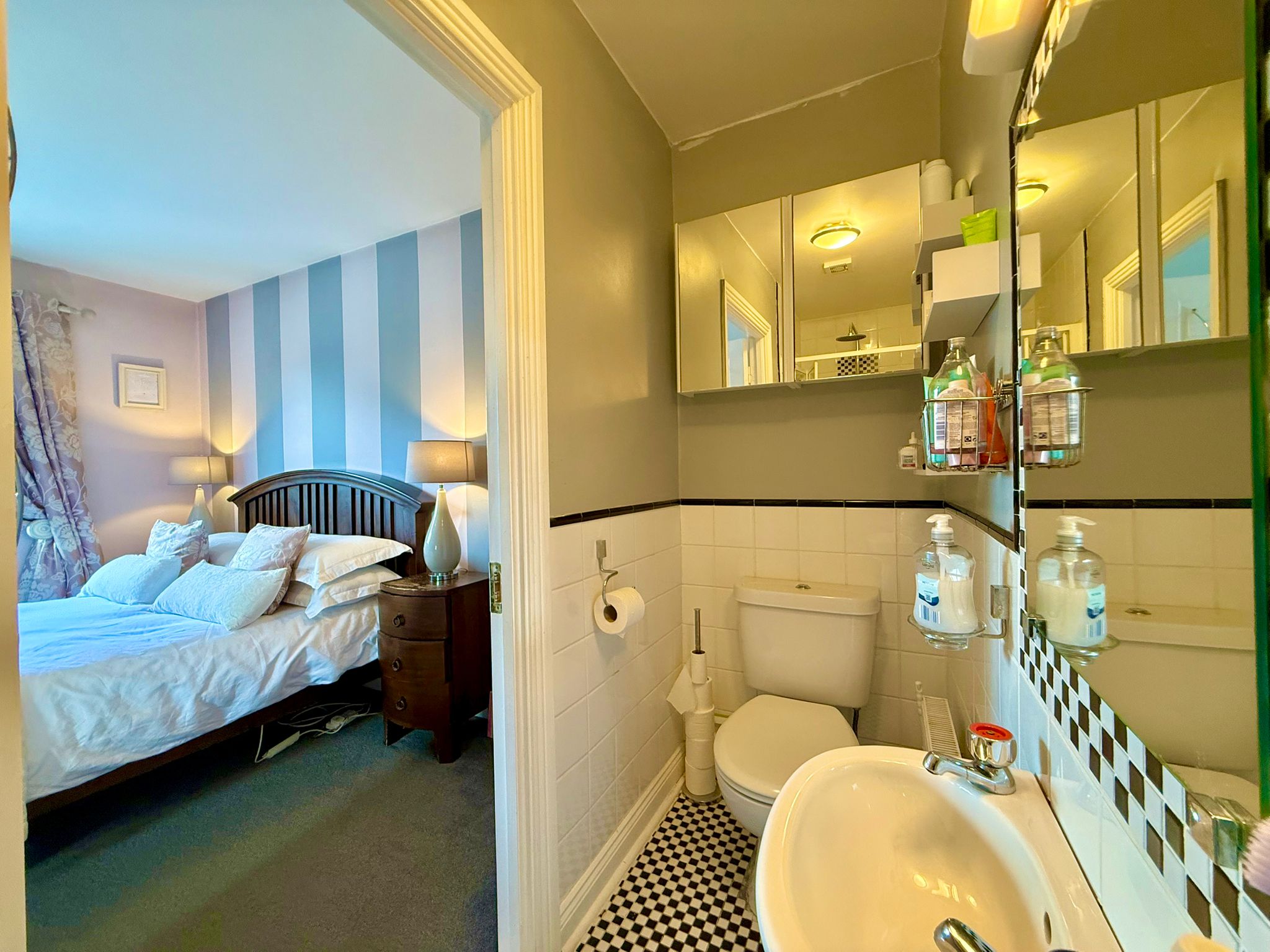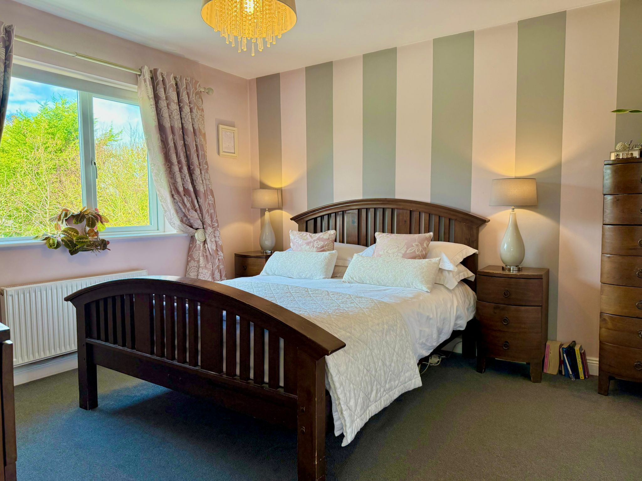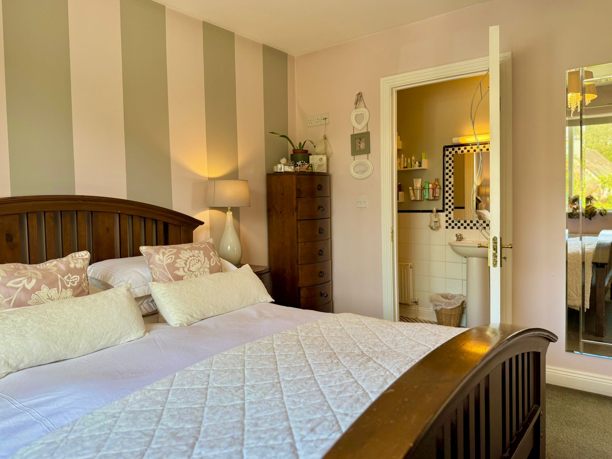 Upstairs, the accommodation includes: Bedroom 1: Single room currently used as an office, fitted with a sleek slide-robe built-in wardrobe. Bedroom 2: Double bedroom with built-in slide-robe wardrobe. Bedroom 3 (Primary): Double room with private ensuite featuring a pump shower. Main family bathroom: Fully re-tiled and fitted with a modern electric shower.