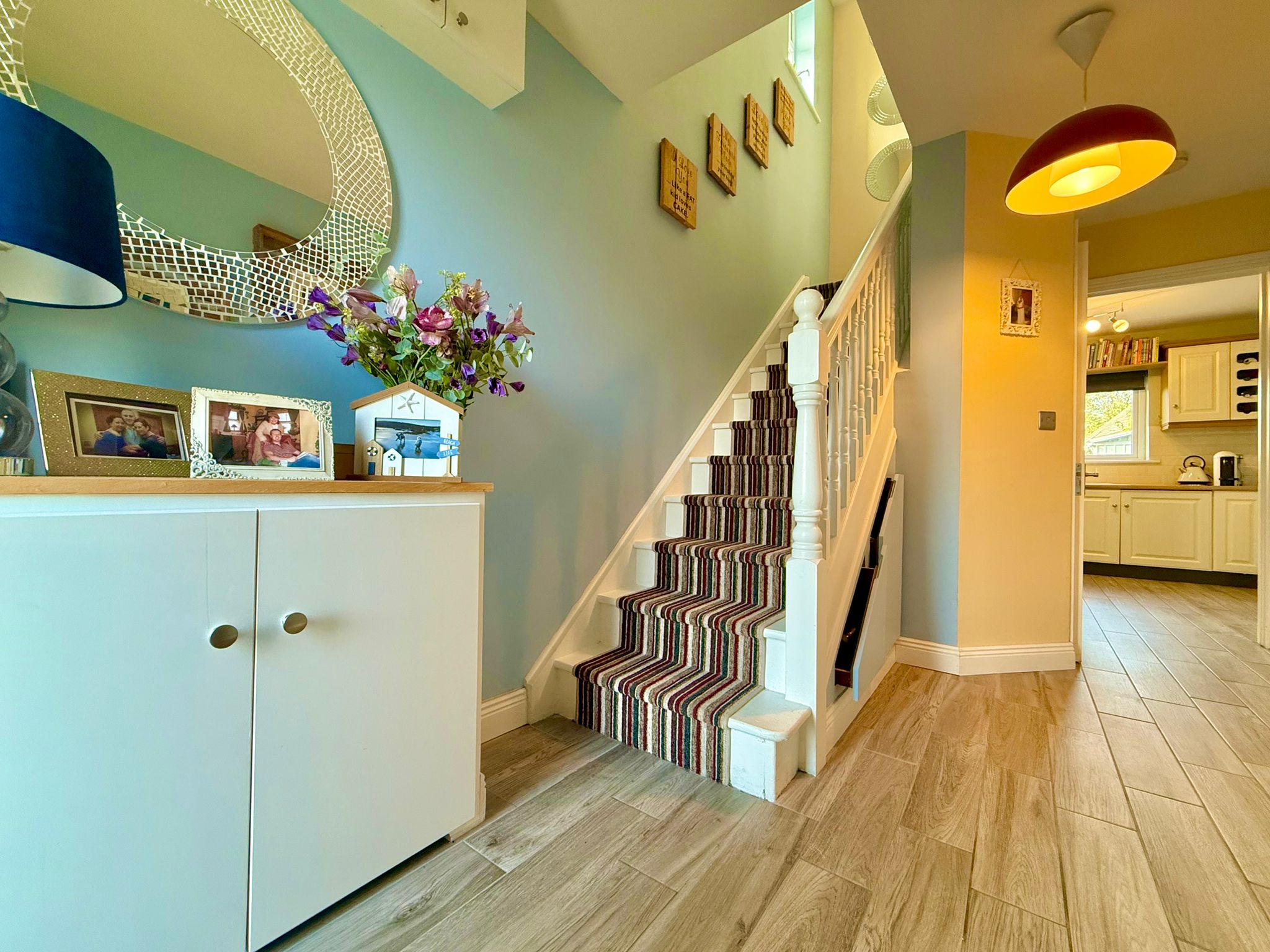 Throughout the home, thoughtful upgrades have been made, including all-new chrome door handles, under-stairs storage, and comprehensive energy improvements with pumped walls, attic insulation, and an insulated water tank. A new gas boiler further enhances energy efficiency.