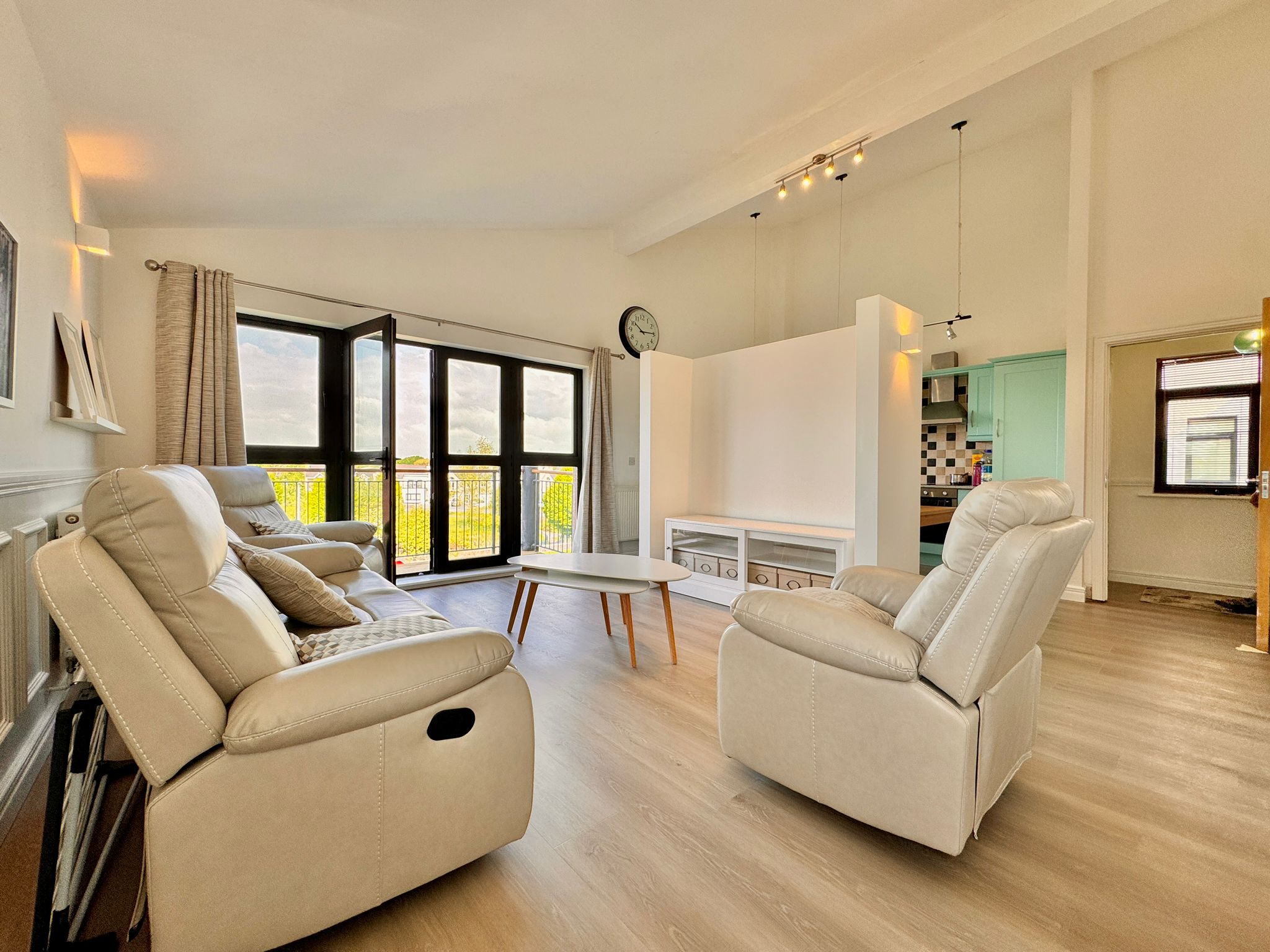 Mark Nestor Property Services are delighted to present this superbly appointed, bright and modern, two-bedroom Penthouse Apartment with ensuites and private balcony, located in the highly sought-after River Village development on the east side of Athlone. Situated on the top floor of a private block (with lift access), this bright and spacious home enjoys panoramic views and excellent natural light throughout. The accommodation includes: