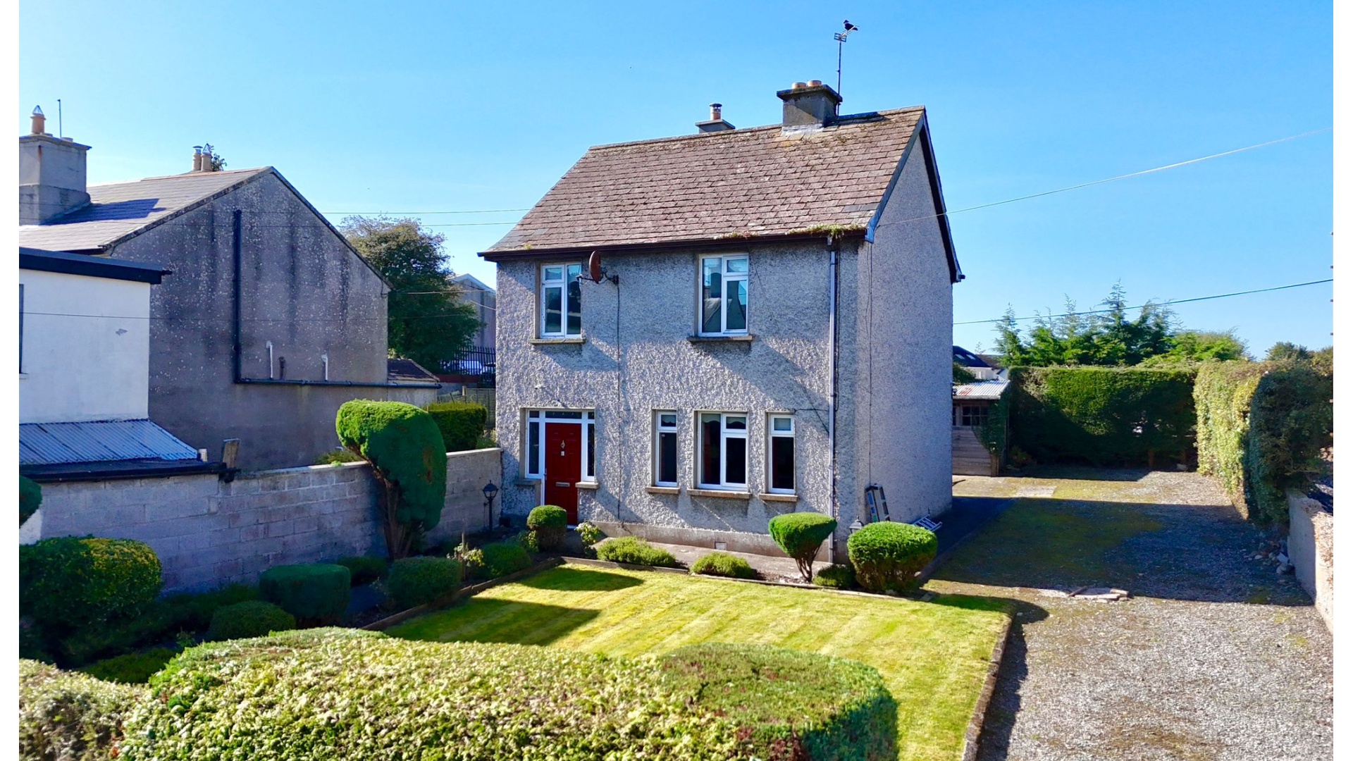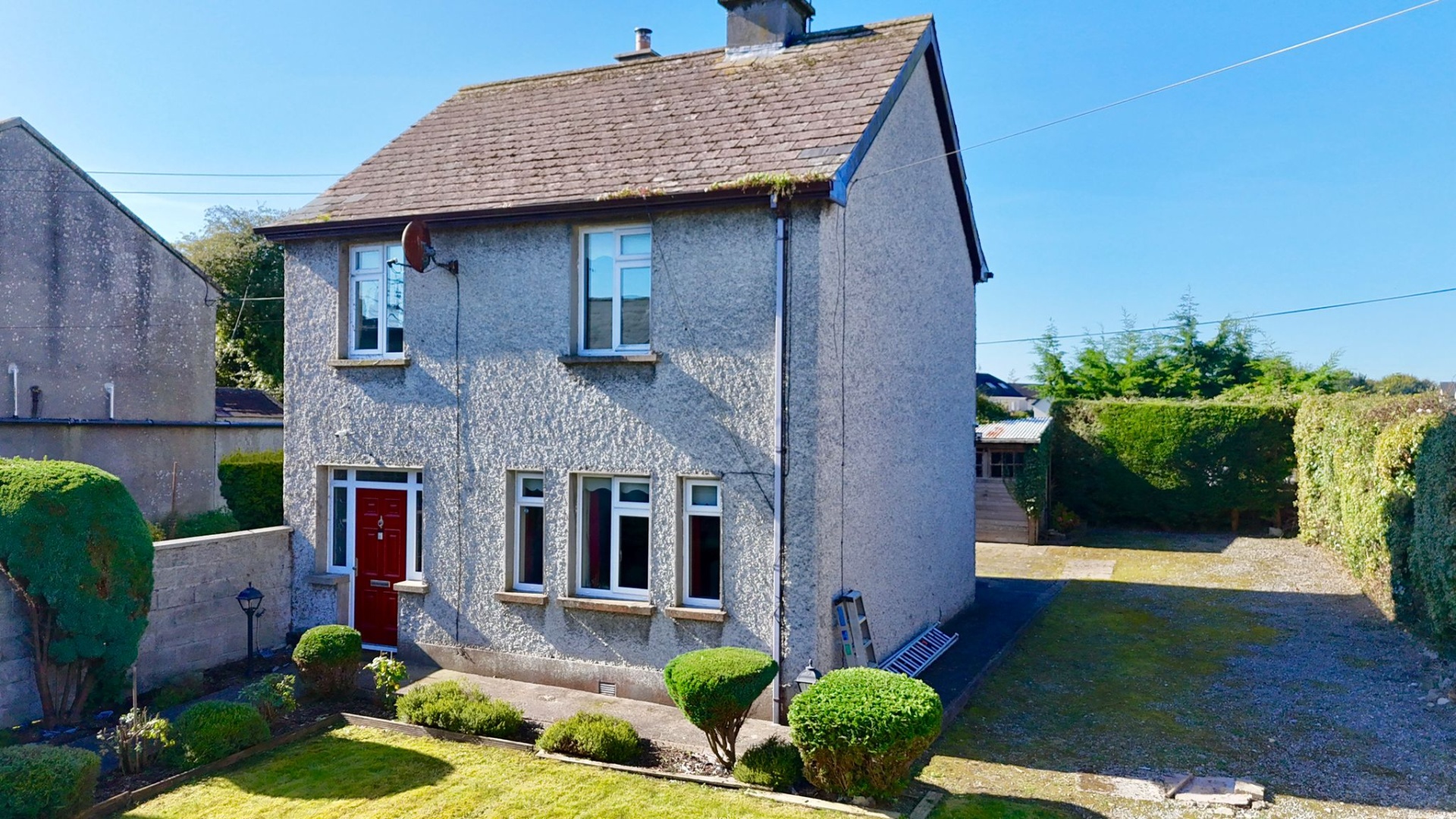 Sitting on a large site, the property offers bright and airy interiors with well-proportioned rooms, including a welcoming entrance hall, generously sized reception rooms, a kitchen/dining area, four bedrooms, and a main family bathroom upstairs.
