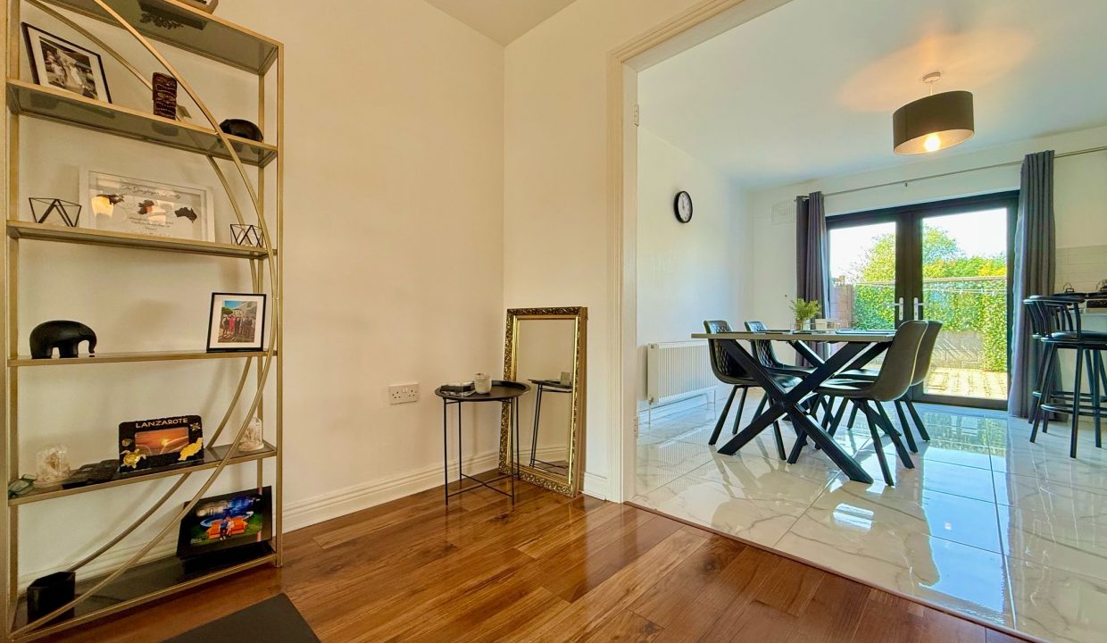 Upon entering you will notice how this property has been beautifully updated, boasting a range of modern upgrades, including a sleek compact wood pellet stove replacing the original fireplace, and a striking new composite front door. The kitchen has been completely renovated with quartz countertops, a matching kitchen table, all new appliances, and elegant white tiled flooring. French patio doors open fully to the rear patio, complemented by a matching kitchen window above the sink. Additional features include stylish wooden flooring in the hallway and bedrooms, and fresh carpeting on the stairs and landing, creating a warm and welcoming feel throughout.