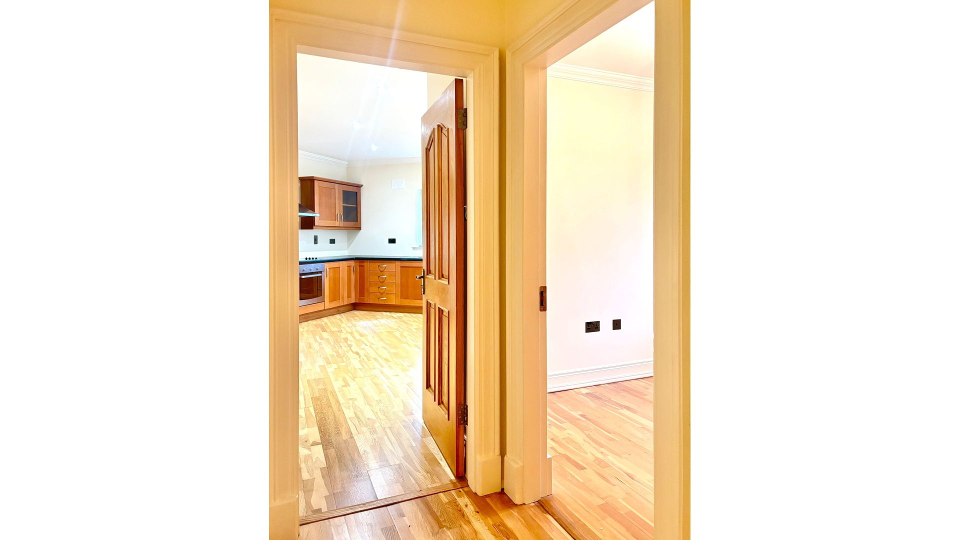Inside, the home features a bright and airy living room / a well-equipped kitchen, two bedrooms, and a modern family bathroom. Each room is thoughtfully laid out to maximise space and natural light, creating a warm and inviting atmosphere throughout.