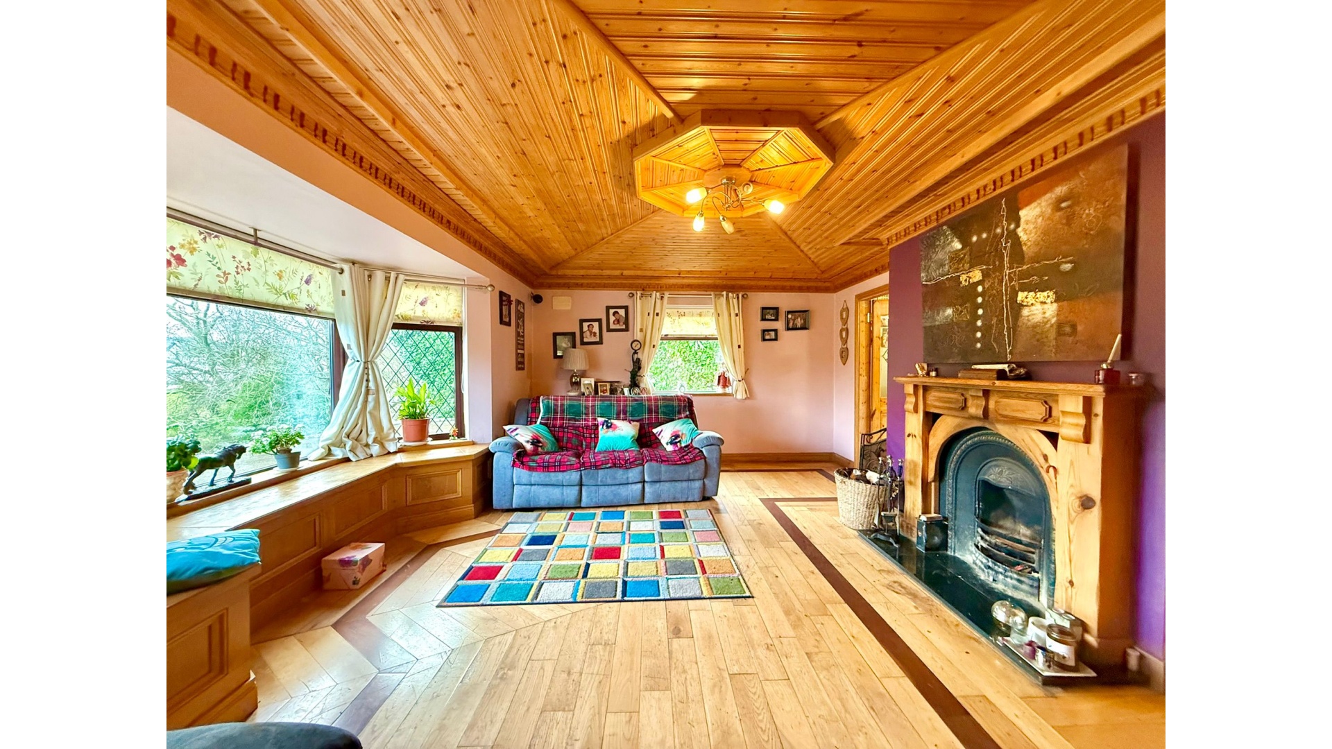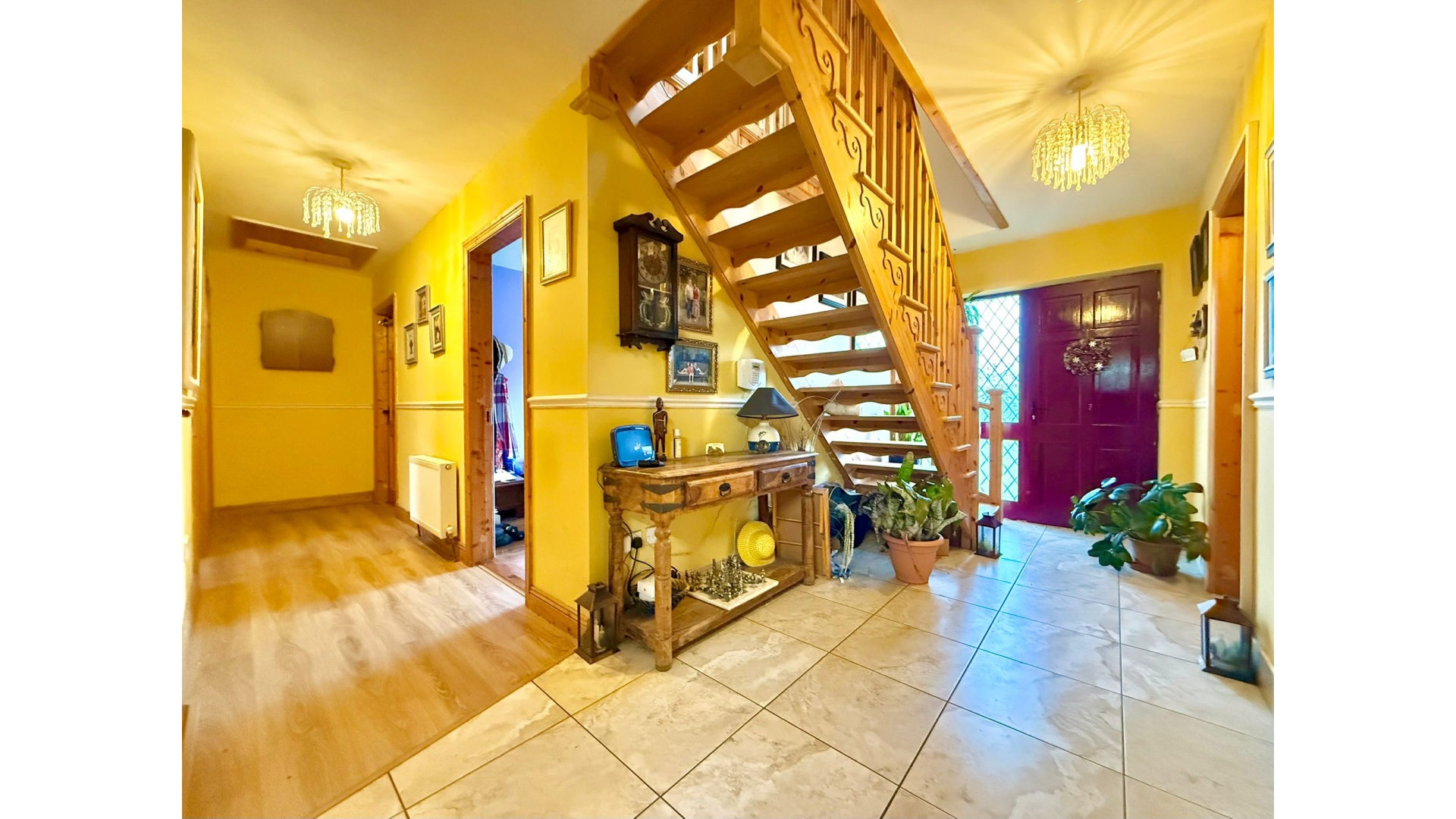 Set on beautifully mature grounds with a charming front pond, this impressive residence combines space, privacy and countryside living, while remaining within easy reach of all essential amenities. The home is bright and well-proportioned throughout, with a spacious kitchen and living area at its heart, complemented by a separate back kitchen/utility and a comfortable sitting room ideal for family life.