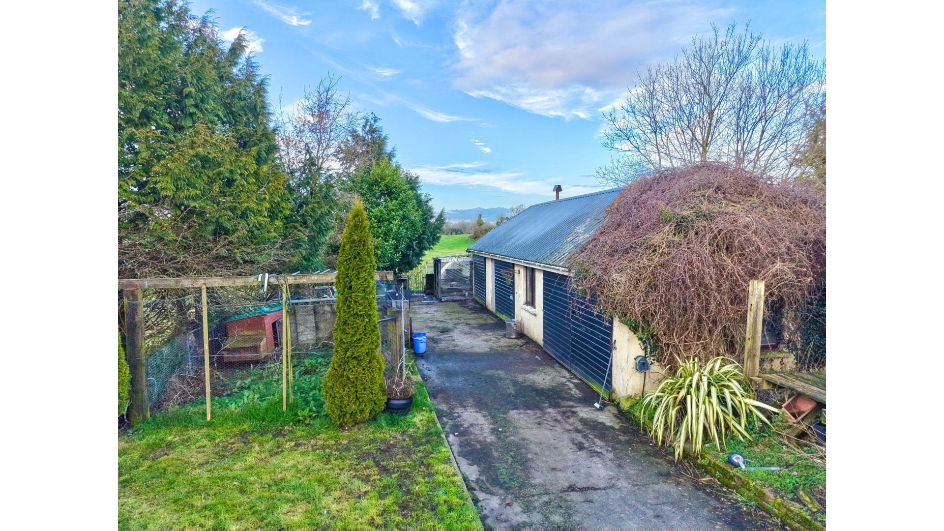 Outside, the property truly excels, offering a unique lifestyle opportunity with a glass house, polytunnel, hen run and dedicated wild bird sanctuary area, all set within mature gardens. A large, sectioned shed provides excellent storage or workshop potential. The home also benefits from a private spring well water supply and water softener system.