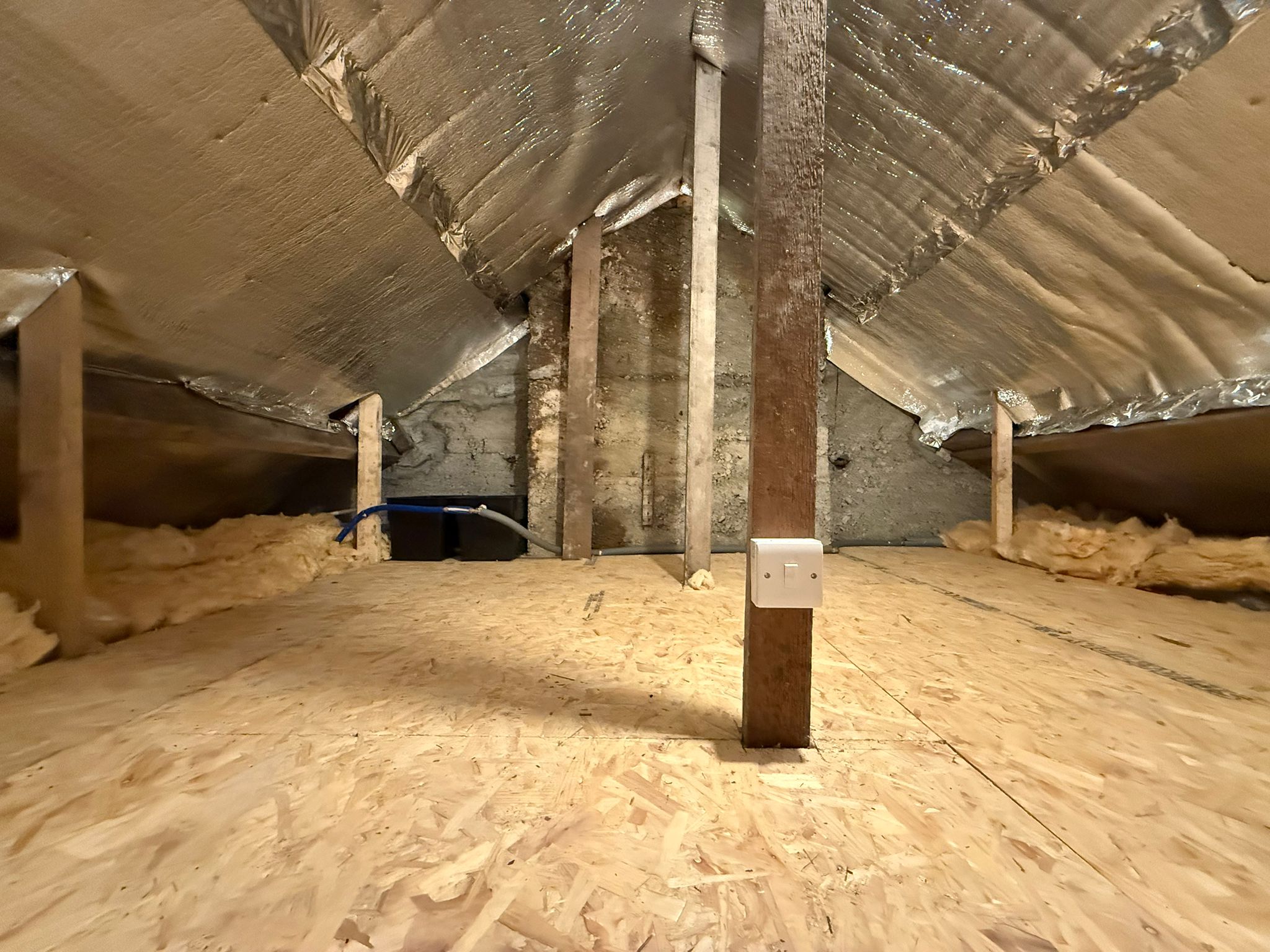 The attic space has been dry-lined and insulated, featuring foil-backed panels and a newly laid floor, creating a bright, dry and practical area suitable for storage, with lighting already installed. (Further potential with the addition of attic stairs, subject to purchaser preference.)