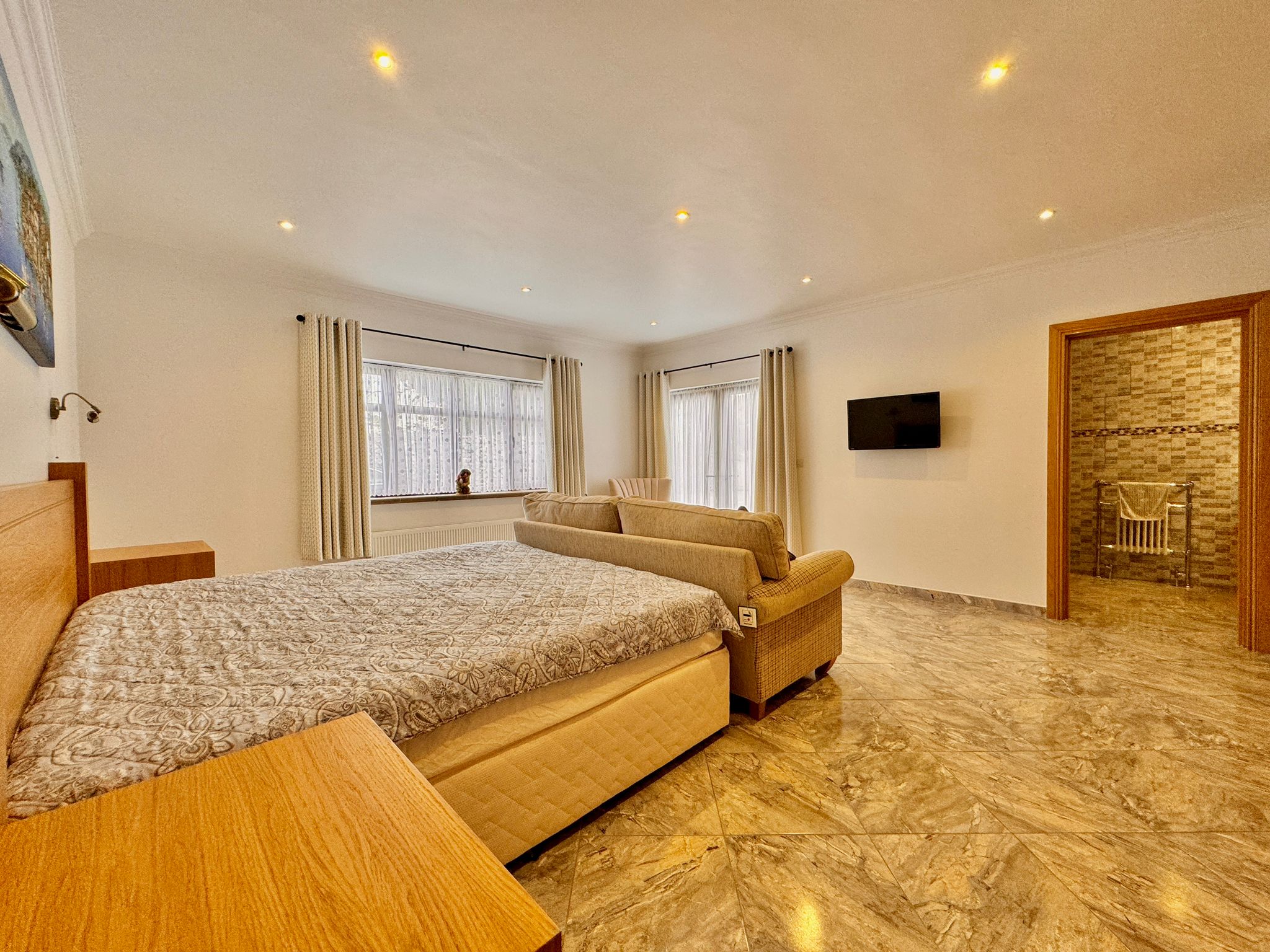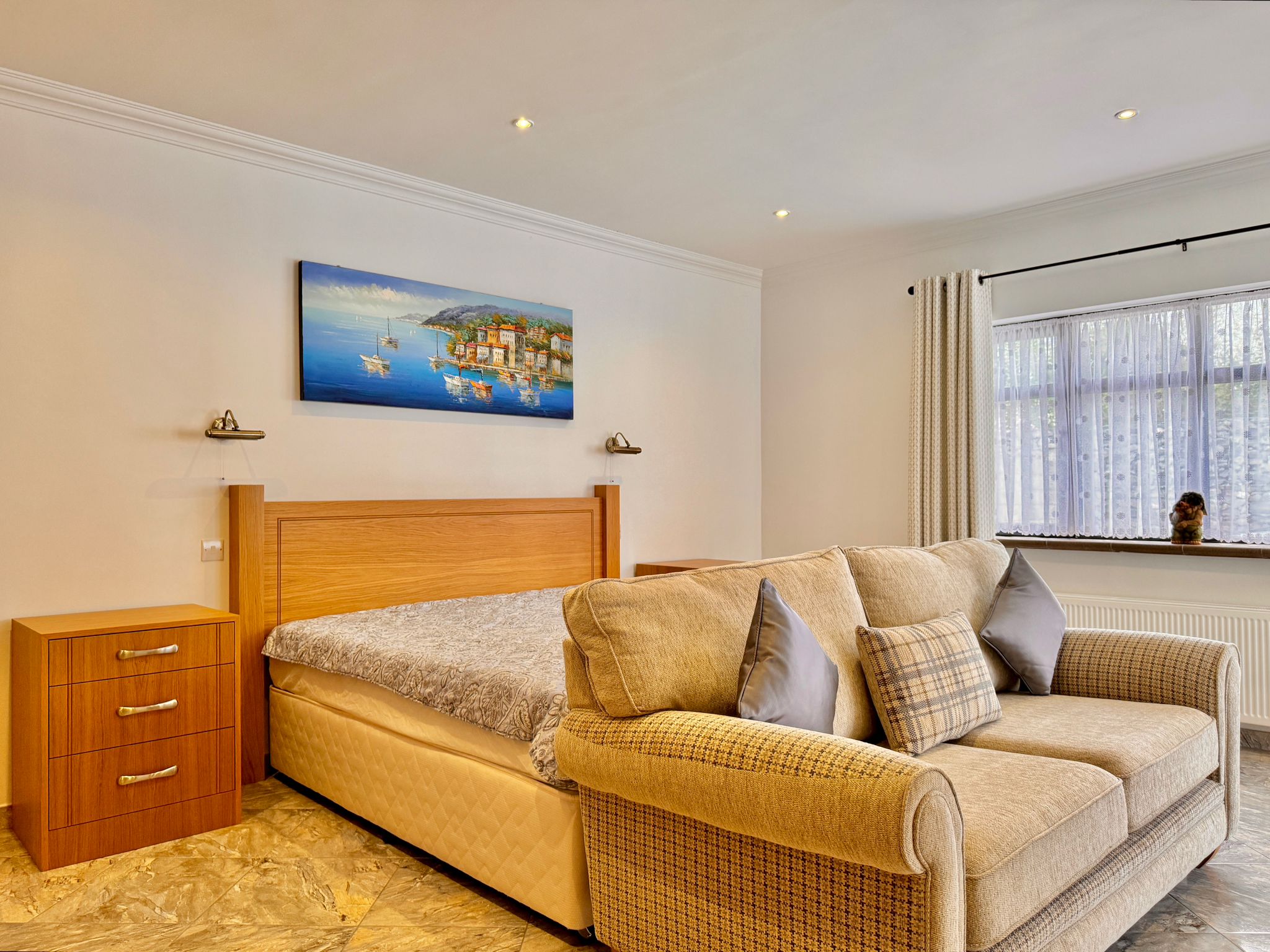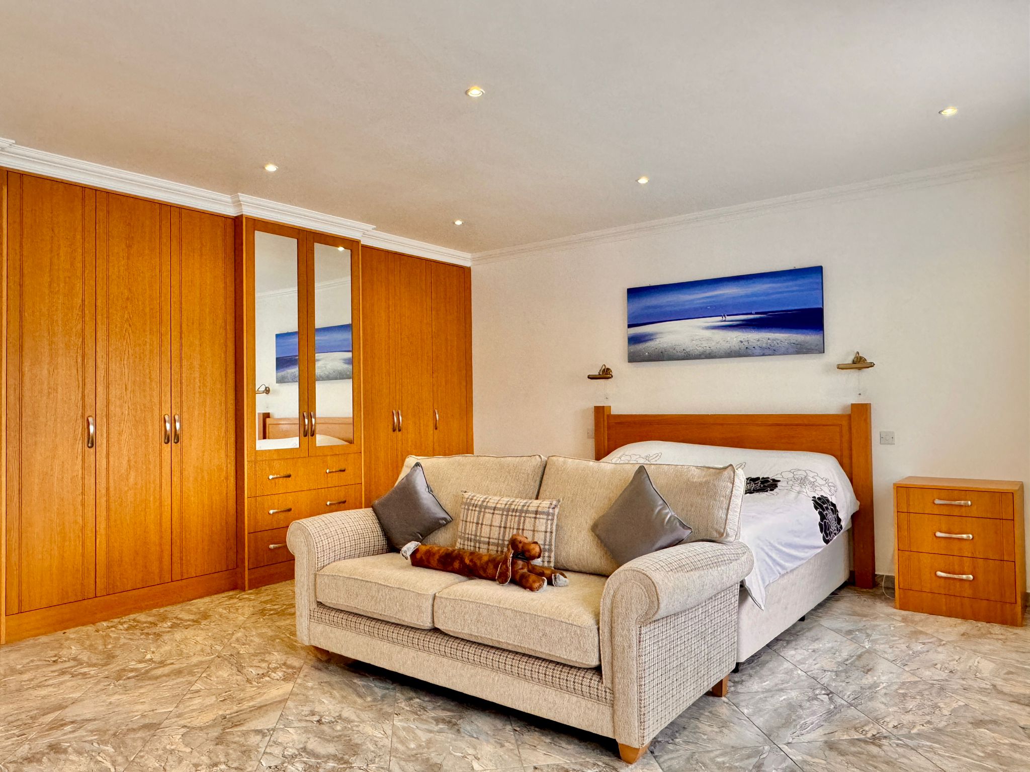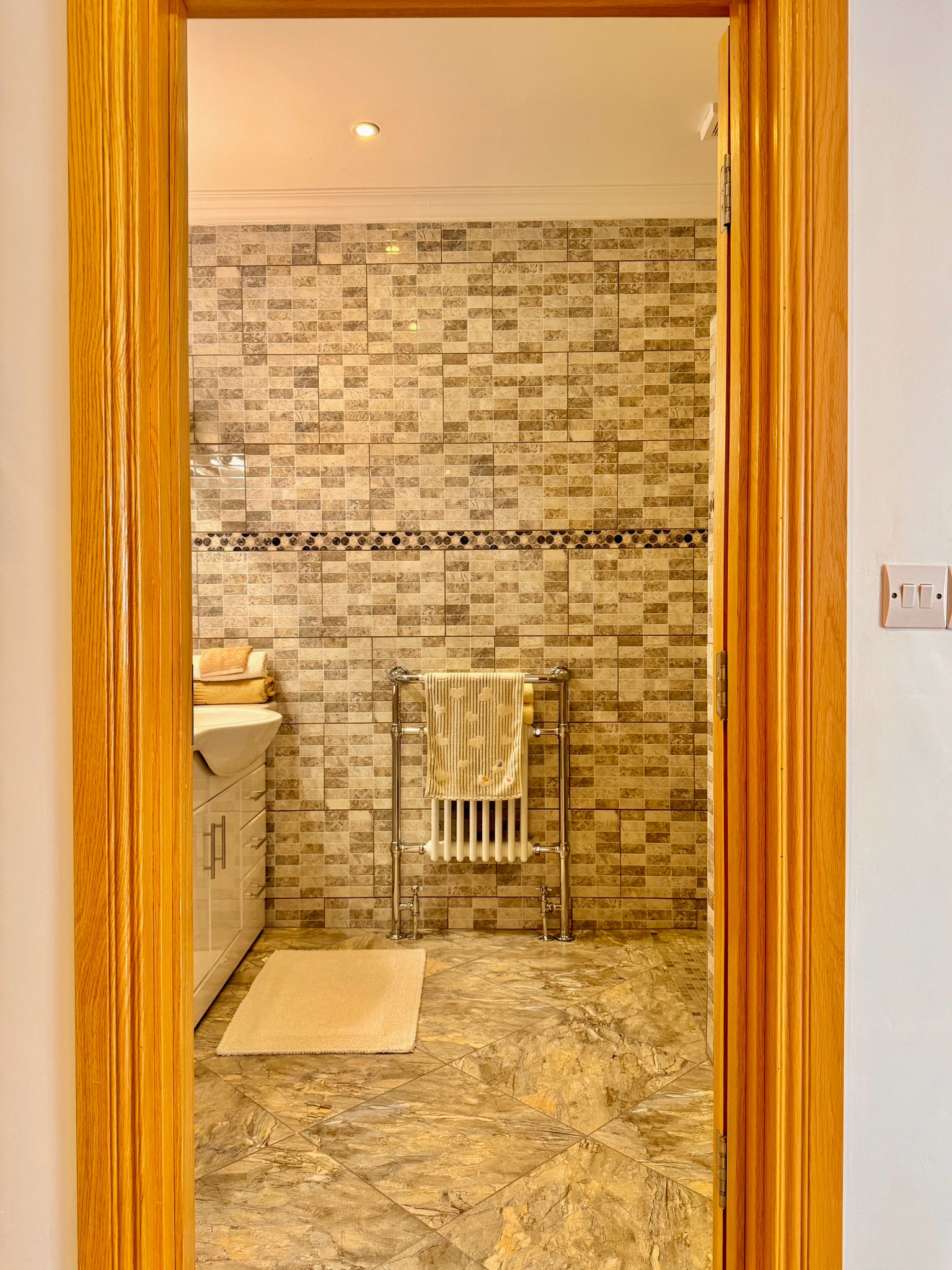 The master bedroom, a true retreat, features an en suite bathroom with Jacuzzi feature. The two further bedrooms are equally beautifully decorated with built-in oak wardrobes. Each bedroom has an adjacent en-suite with beautifully tiled finishing and walk in showers. Each en-suite is a luxurious space with tasteful decor.