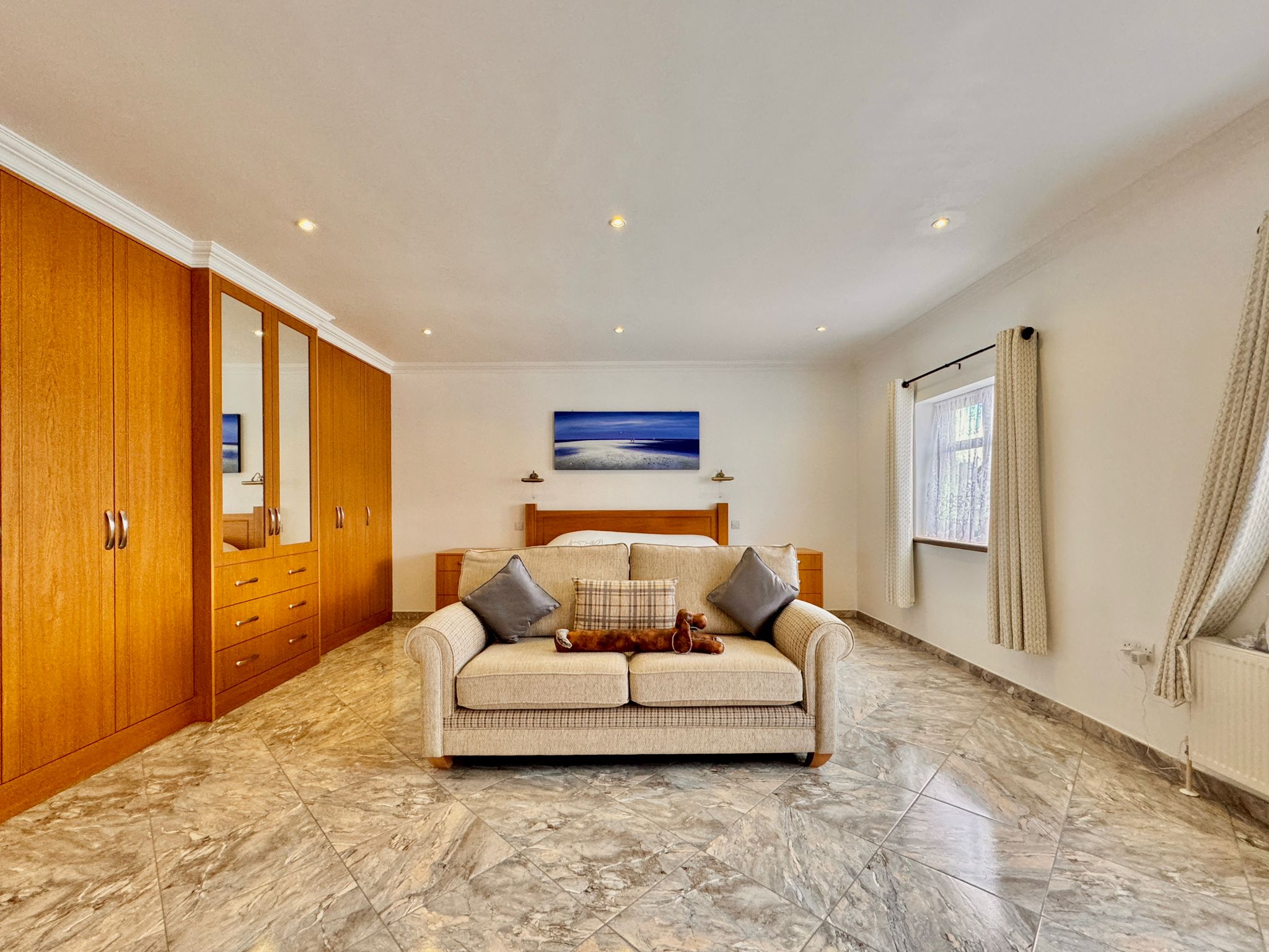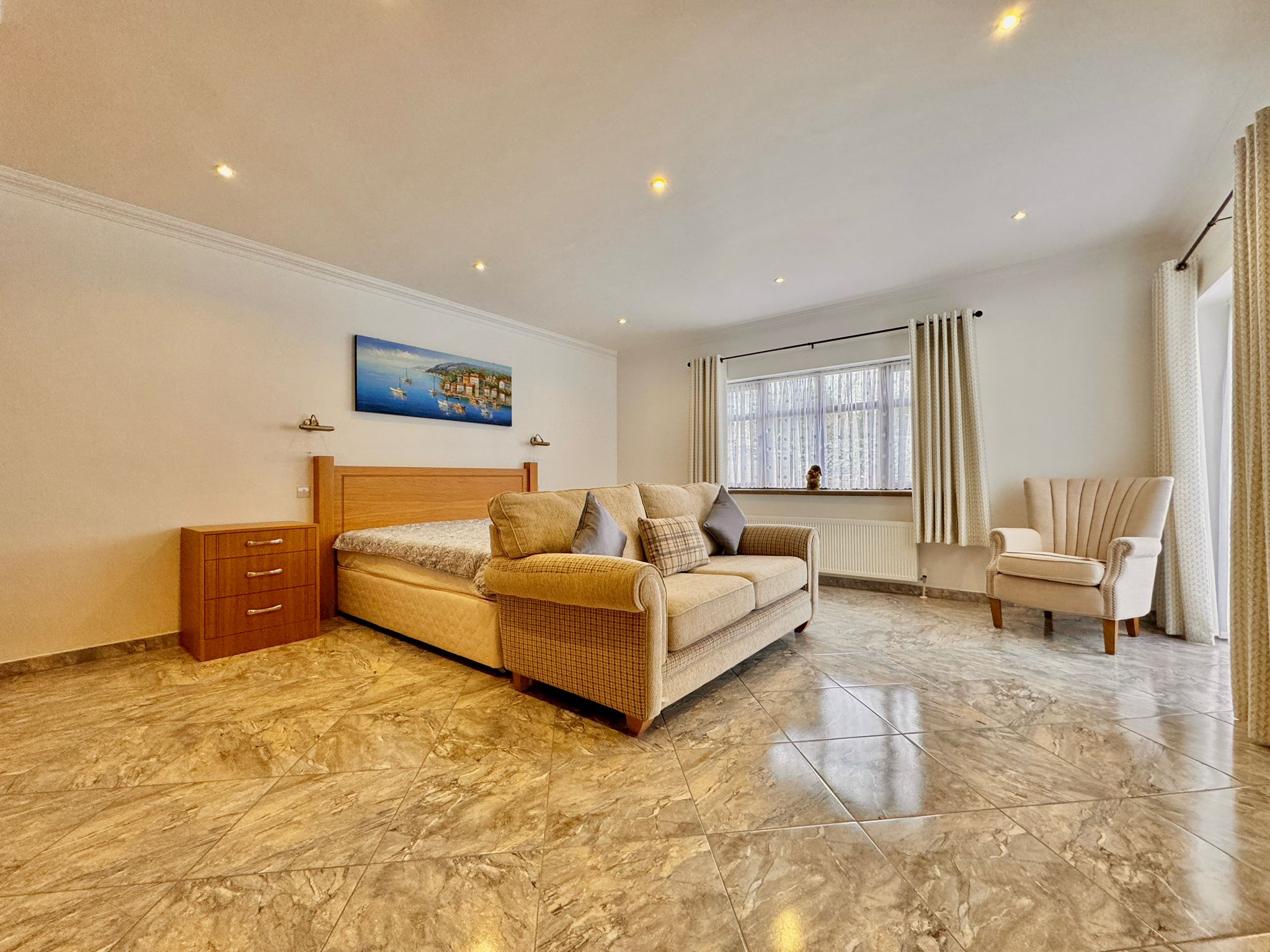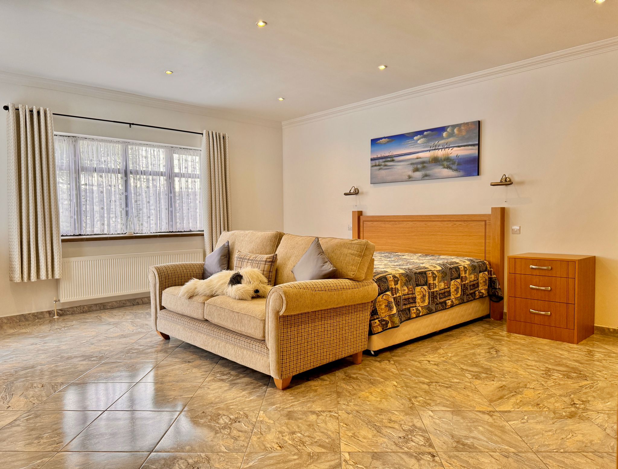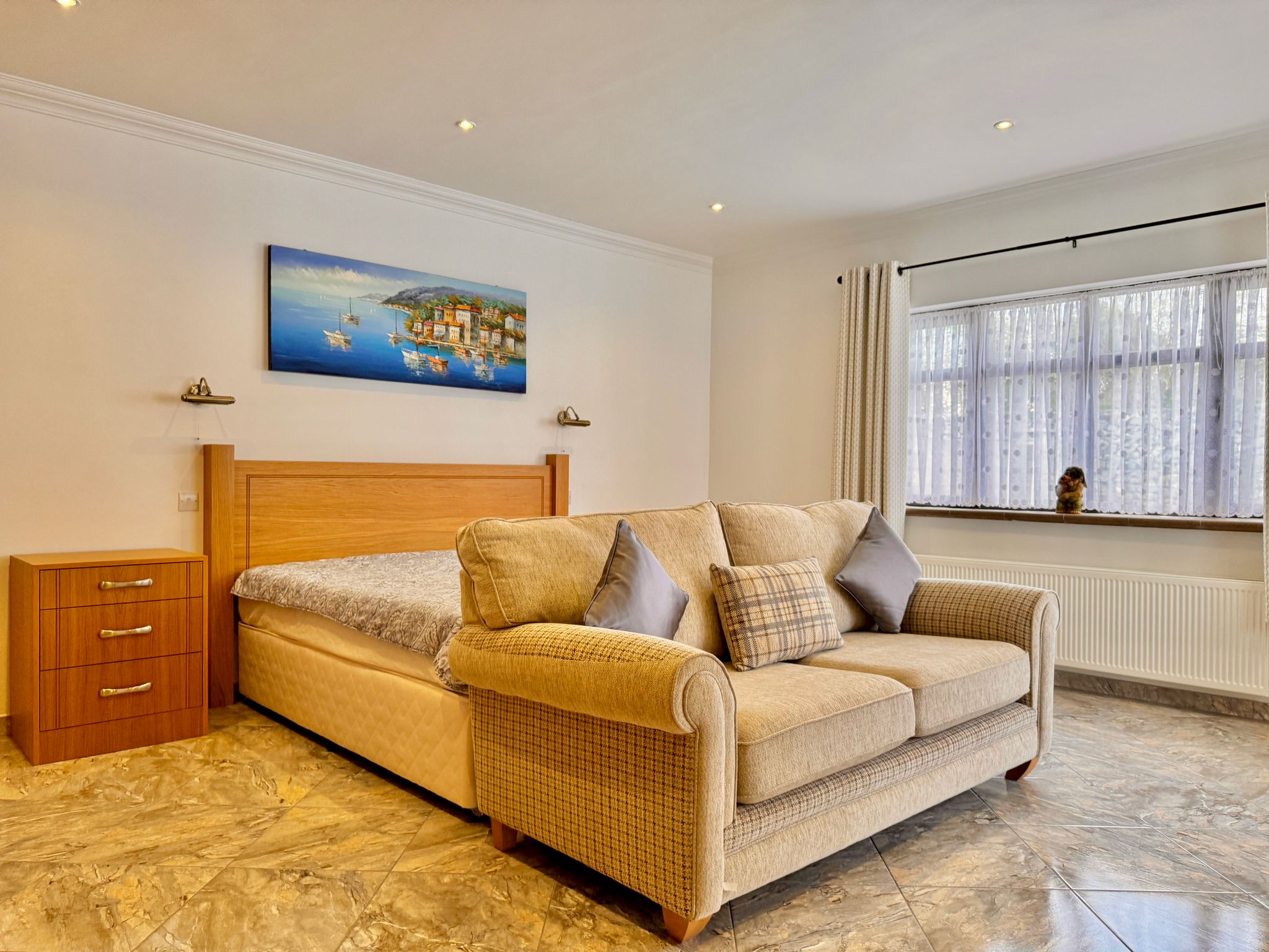 The master bedroom, a true retreat, features an en suite bathroom with Jacuzzi feature. The two further bedrooms are equally beautifully decorated with built-in oak wardrobes. Each bedroom has an adjacent en-suite with beautifully tiled finishing and walk in showers. Each en-suite is a luxurious space with tasteful decor.