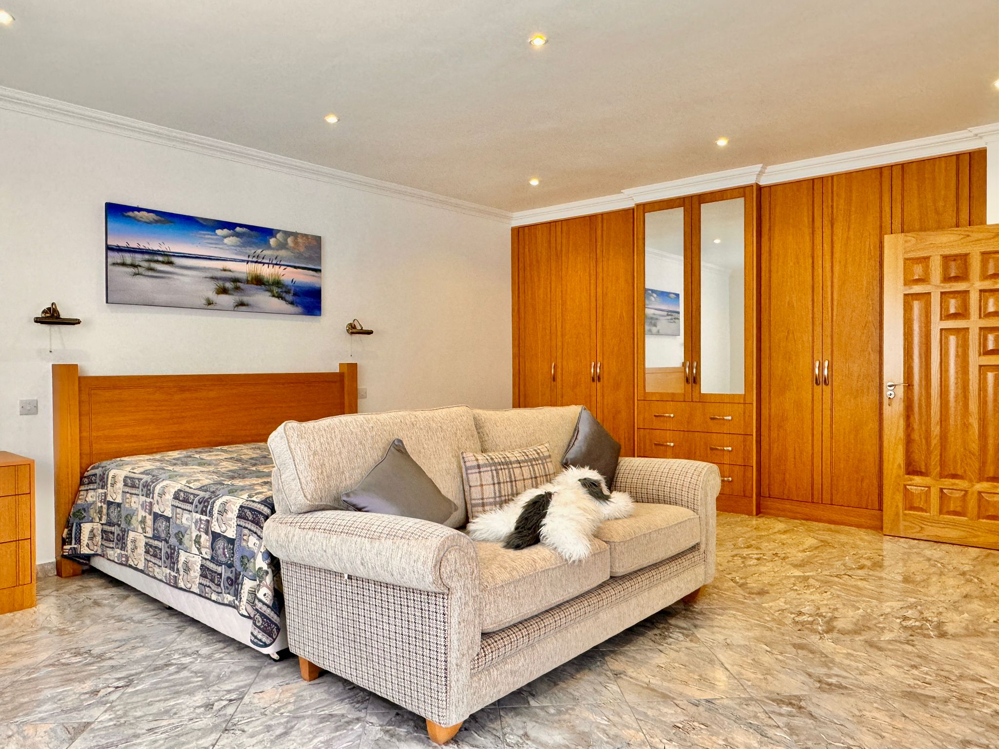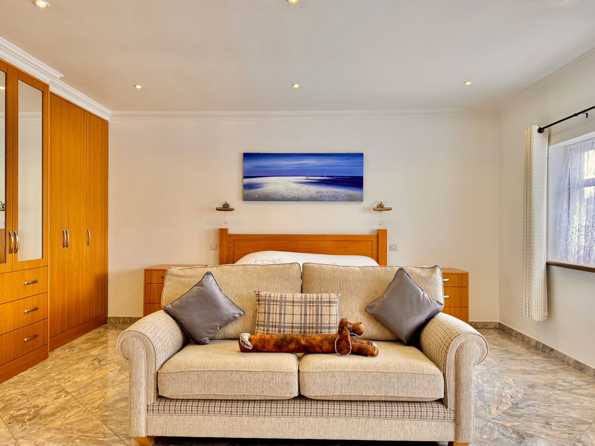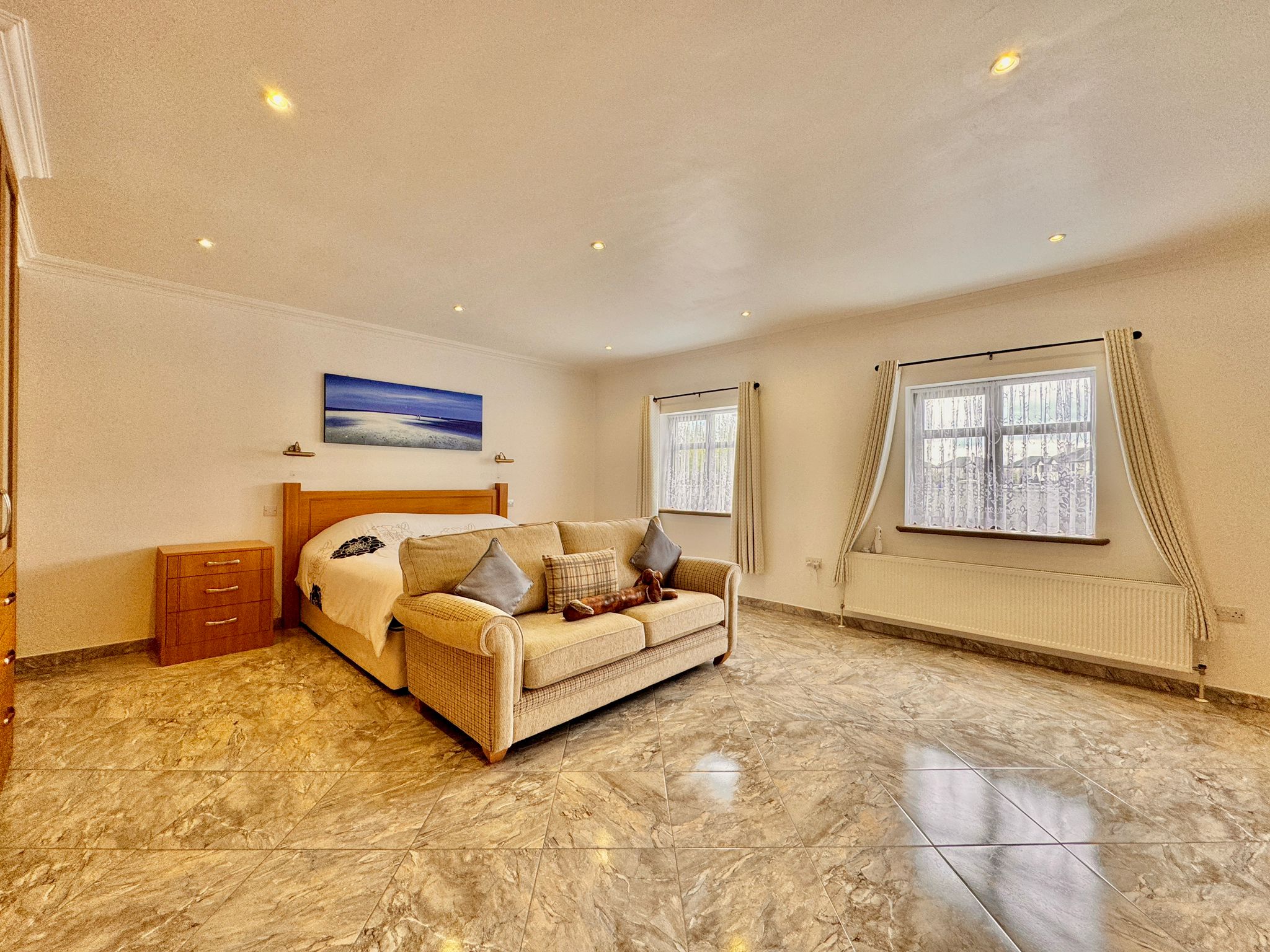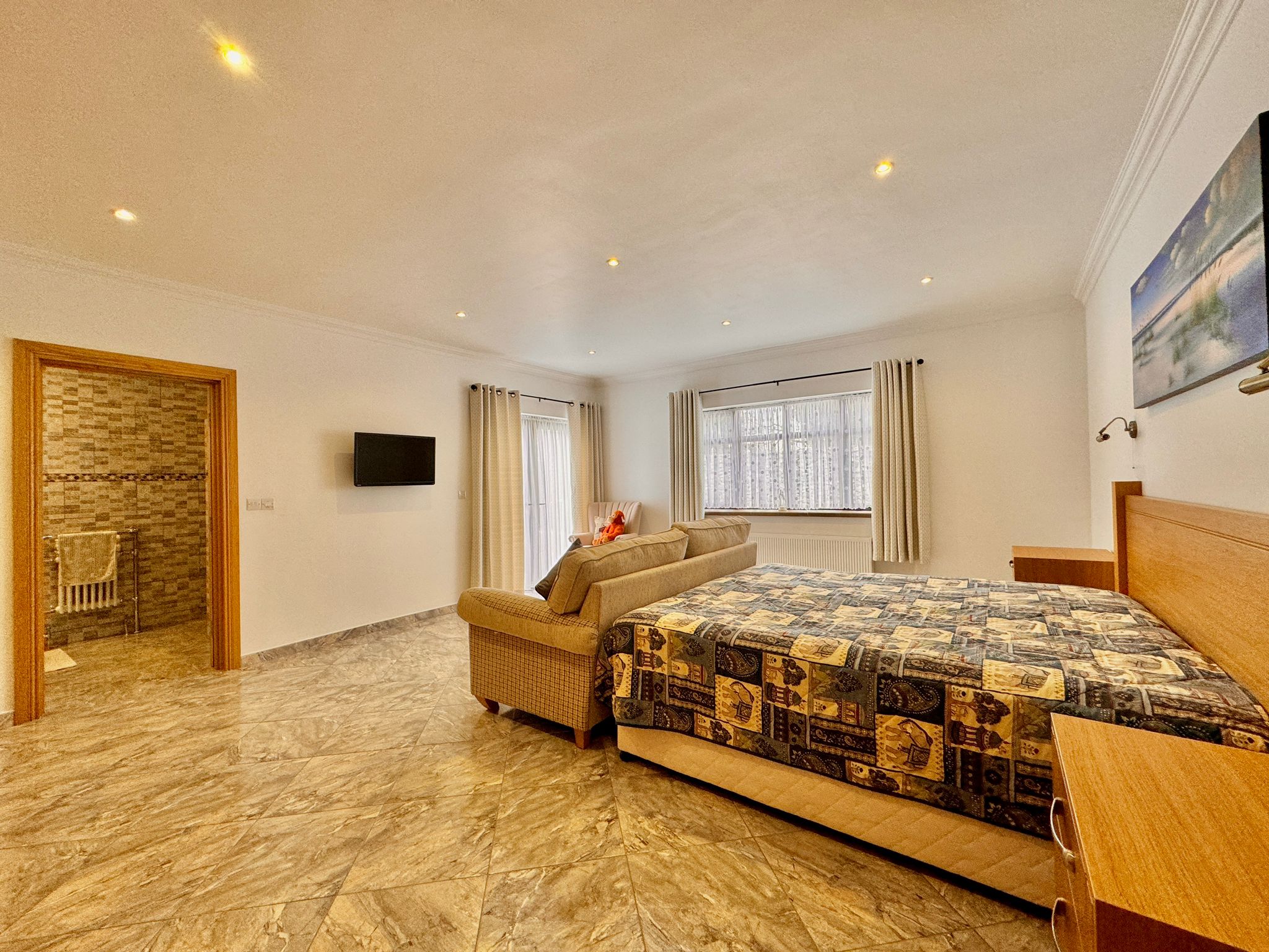 The master bedroom, a true retreat, features an en suite bathroom with Jacuzzi feature. The two further bedrooms are equally beautifully decorated with built-in oak wardrobes. Each bedroom has an adjacent en-suite with beautifully tiled finishing and walk in showers. Each en-suite is a luxurious space with tasteful decor.