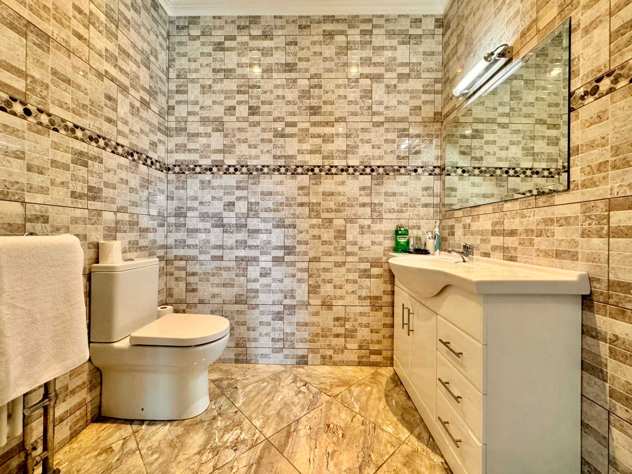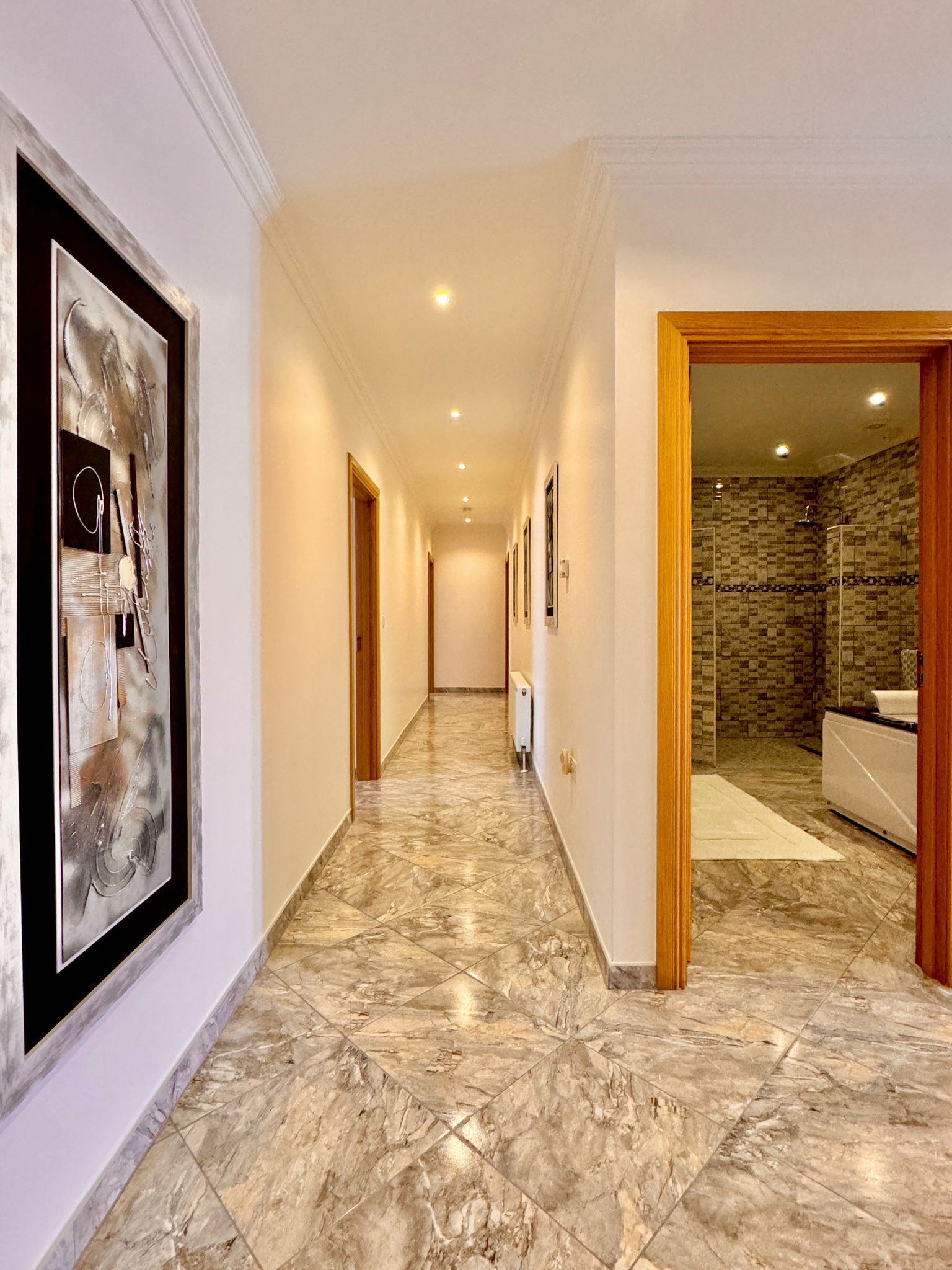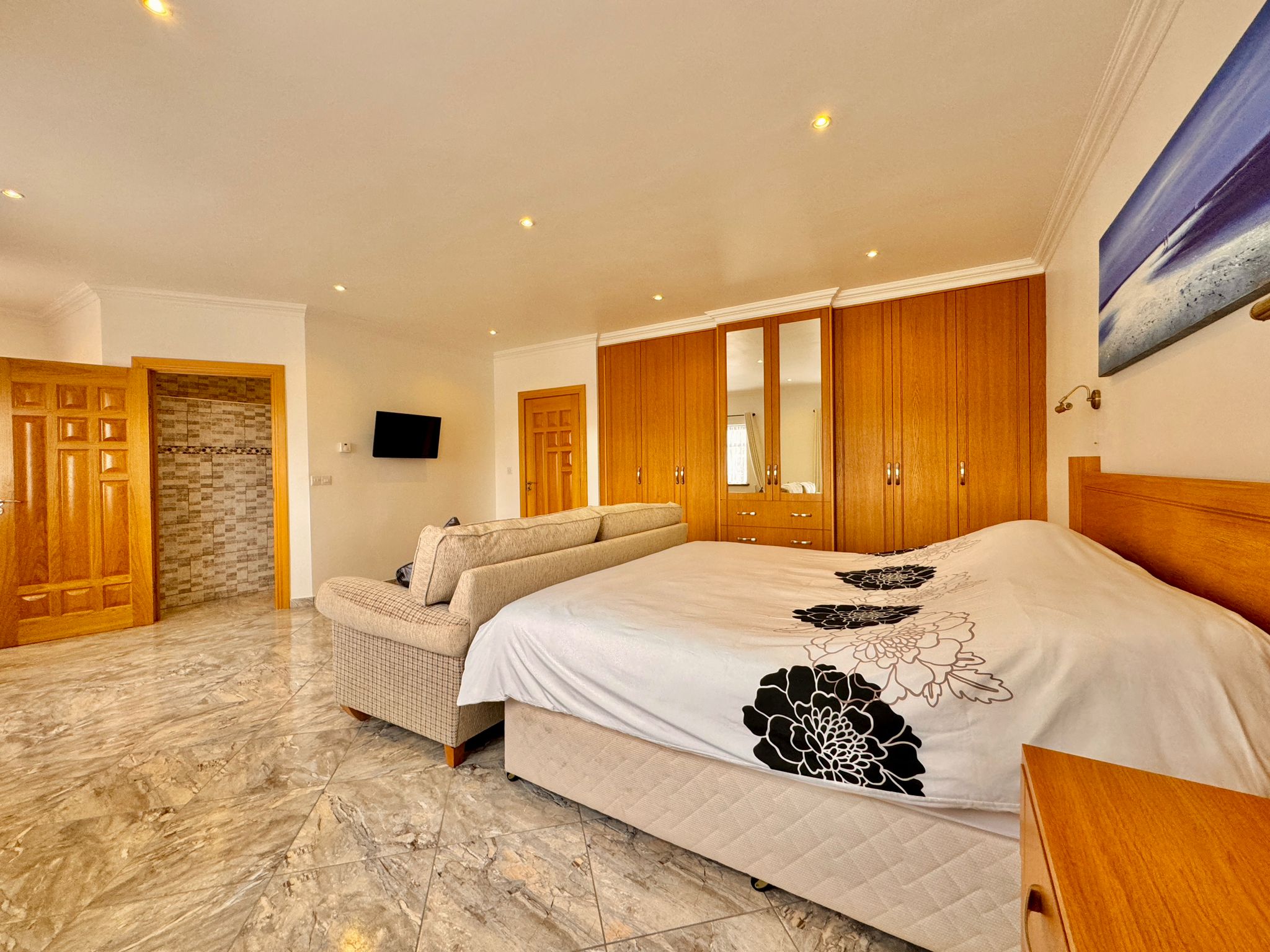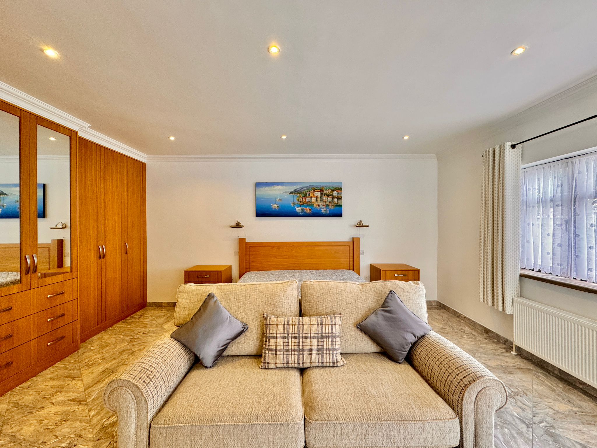 The master bedroom, a true retreat, features an en suite bathroom with Jacuzzi feature. The two further bedrooms are equally beautifully decorated with built-in oak wardrobes. Each bedroom has an adjacent en-suite with beautifully tiled finishing and walk in showers. Each en-suite is a luxurious space with tasteful decor.