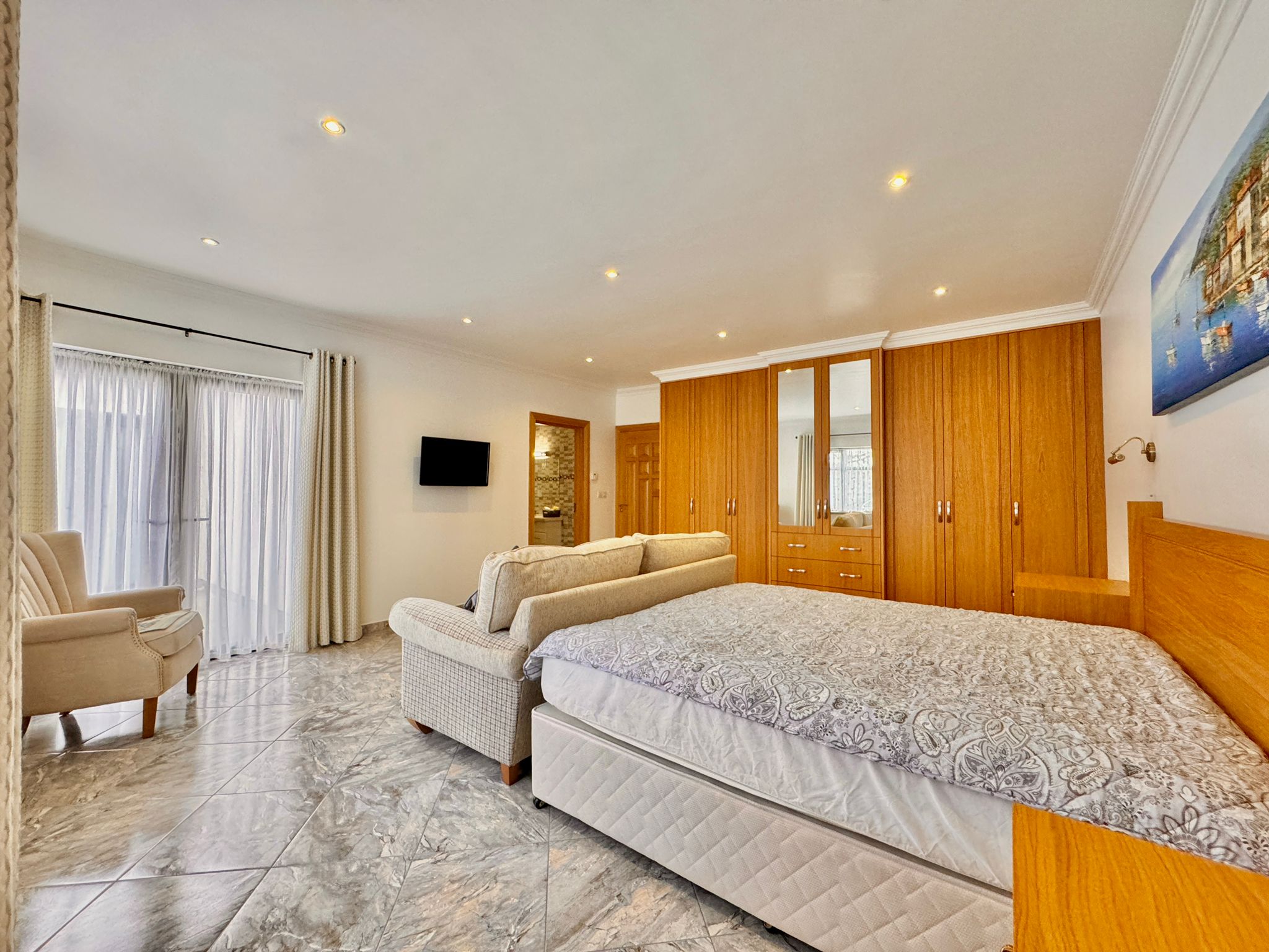 The kitchen is equipped with modern appliances, sleek granite counter tops, integrated appliances and ample storage with a central island making it a chef’s delight. Large windows frame sweeping views of the exterior, allowing natural light to flood in.